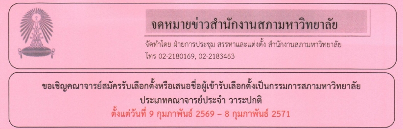 จดหมายข่าวเชิญชวนคณาจารย์สมัครรับเลือกตั้งหรือเสนอชื่อผู้เข้ารับเลือกตั้งเป็นกรรมการสภามหาวิทยาลัย ประเภทคณาจารย์ประจำ วาระปกติ
